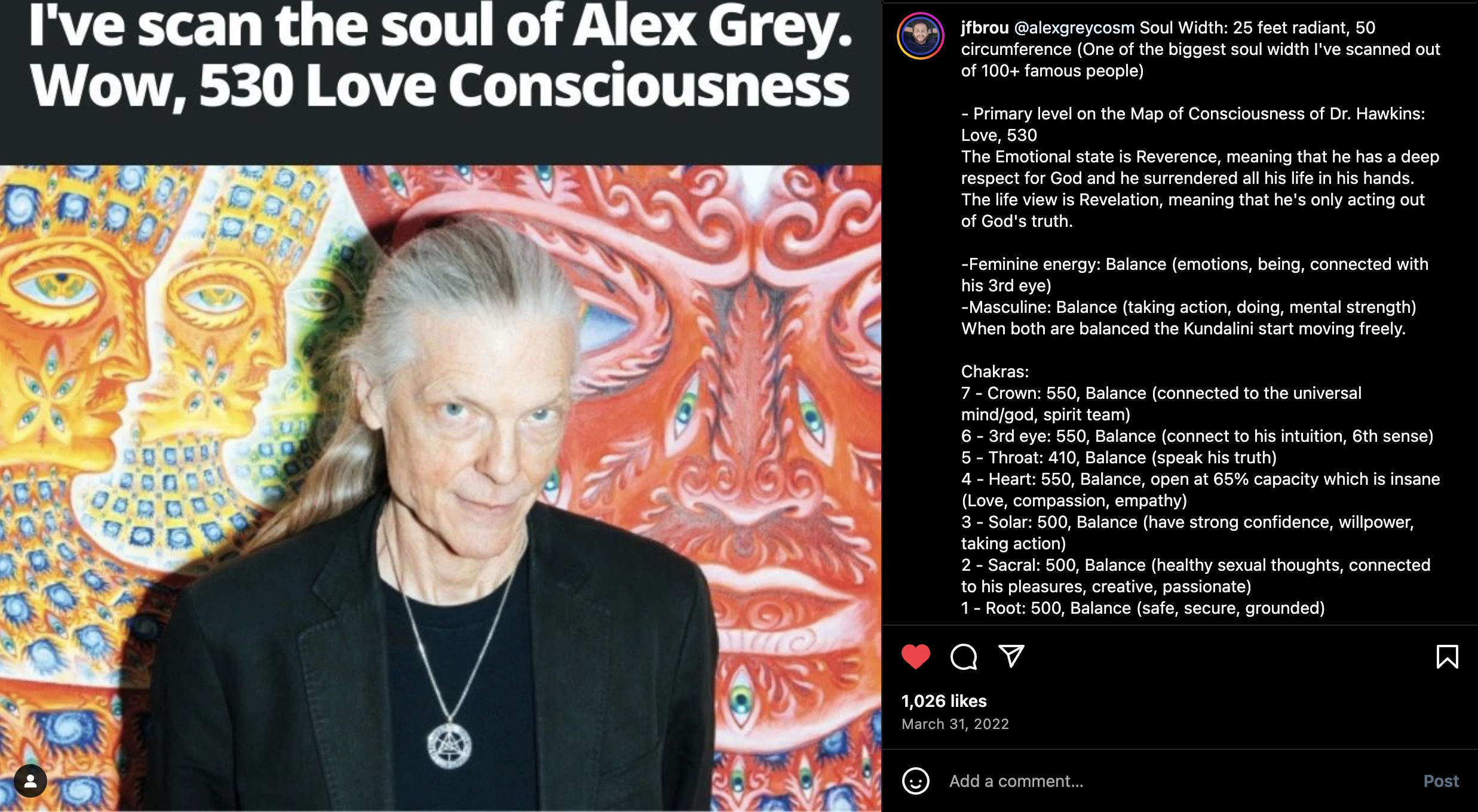 Read the full Soul Scan from Alex Grey HERE: https://www.instagram.com/p/Cbv-GPqLiGo/?utm_source=ig_web_copy_link&igsh=MzRlODBiNWFlZA==