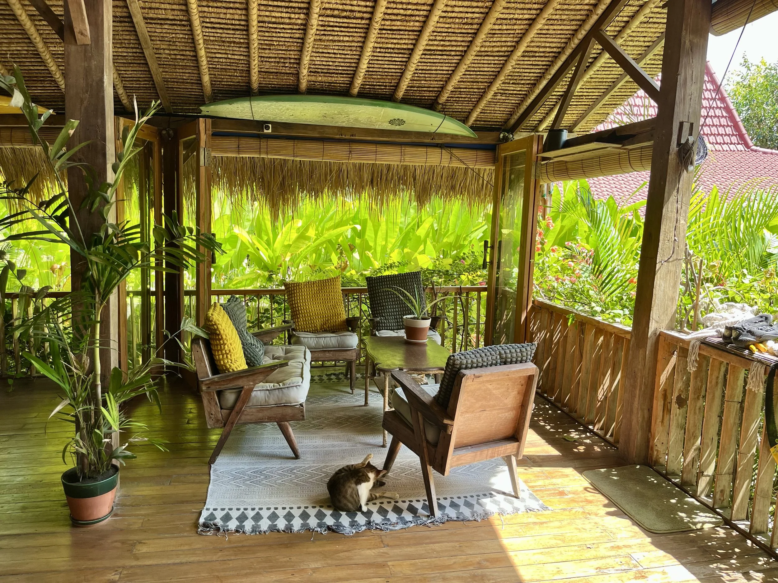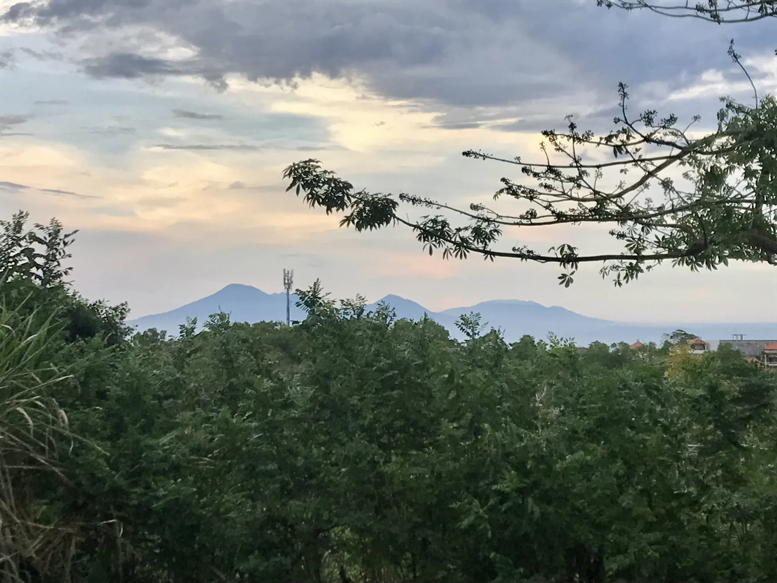 From the porch of the main house after the rains the whole island will be visible, from the porch but also you can take the stairs to the roof of the treehouse studio for this stunning morning view to Mount Batukaru.